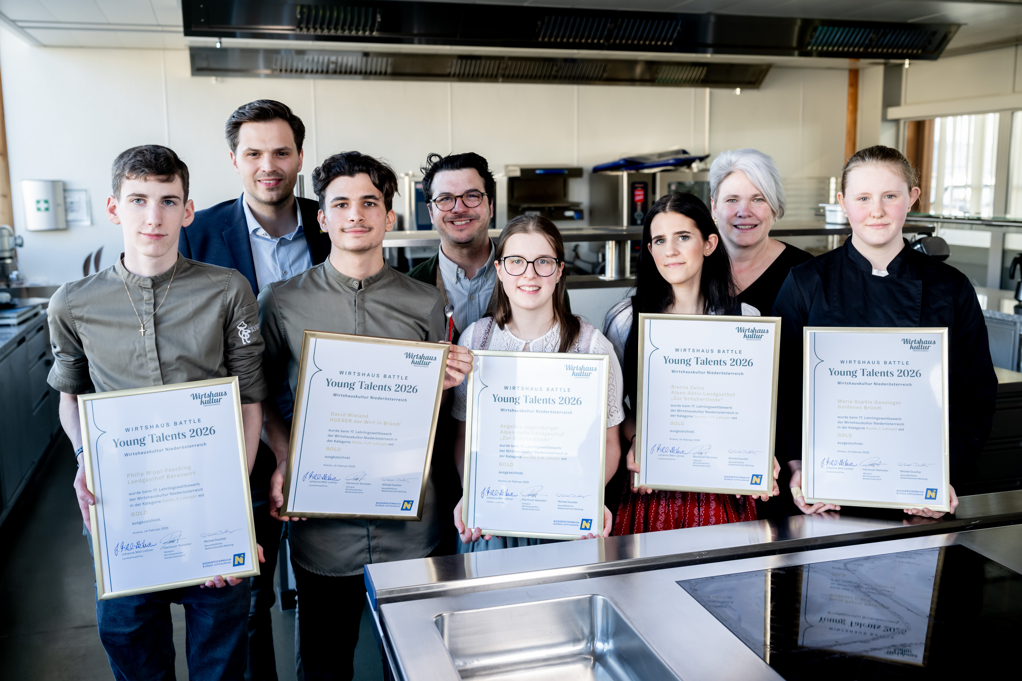 St. Pölten, 25. Februar 2026. Der Lehrlingswettbewerb der Wirtshauskultur Niederösterreich „Wirtshaus Battle – Young Talents“ hat Tradition: Bereits zum 17. Mal wurde er gestern in der HLF Krems durchgeführt. Gestern wurde in den Räumlichkeiten der Schule wieder stundenlang getüftelt, gekocht, serviert und verkostet und die jungen Gastronomie-Fachkräfte stellten dabei kreatives Arbeiten sowie Mut, das eigene Können auch vor Publikum und einer strengen Jury zu zeigen, unter Beweis. Am späten Nachmittag standen dann die Siegerinnen und Sieger fest: Fünf Lehrlinge dürfen sich über eine „Gold“-Auszeichnung freuen.