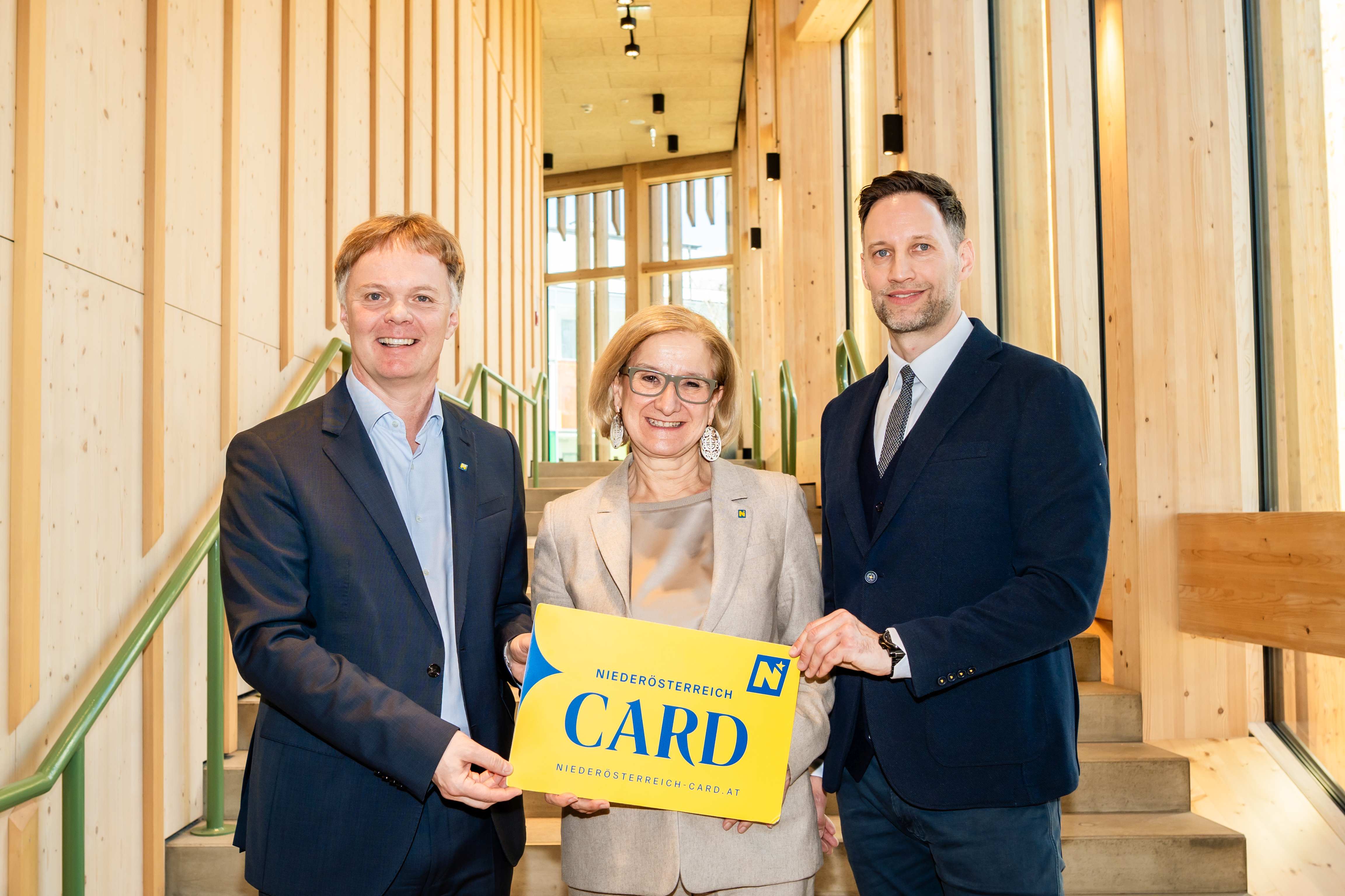 v.l.n.r.: Michael Duscher – Geschäftsführer Niederösterreich Werbung, Landeshauptfrau Johanna Mikl-Leitner, Klemens Wögerer – Geschäftsführer Niederösterreich-CARD