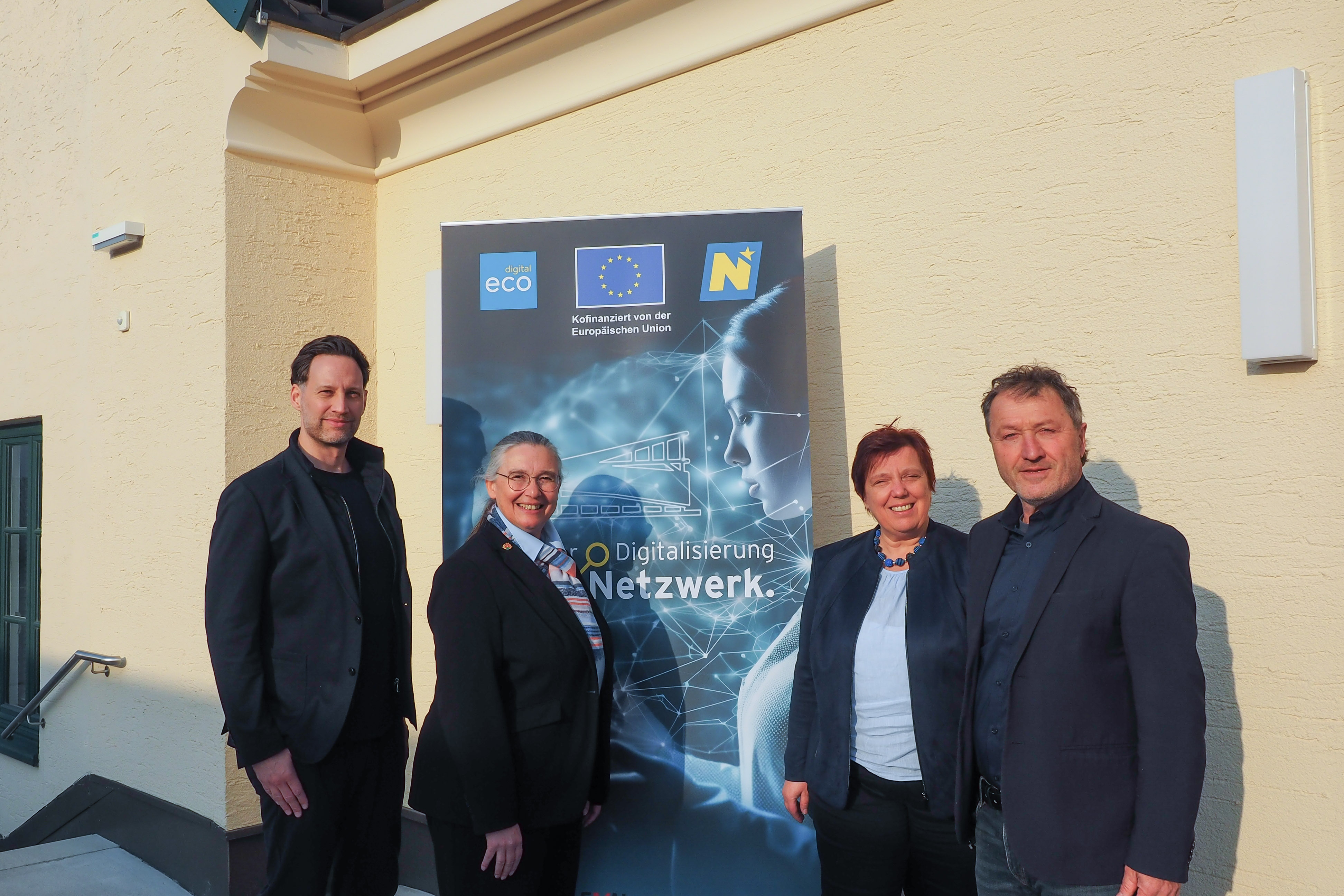 (v.l.n.r.): Klemens Wögerer NÖ Card, Evelyne Gruber-Jansen Top Ausflugsziele, Manuela Machner Ki.NET.ai, Peter Brandstetter ecoplus Haus der Digitalisierung