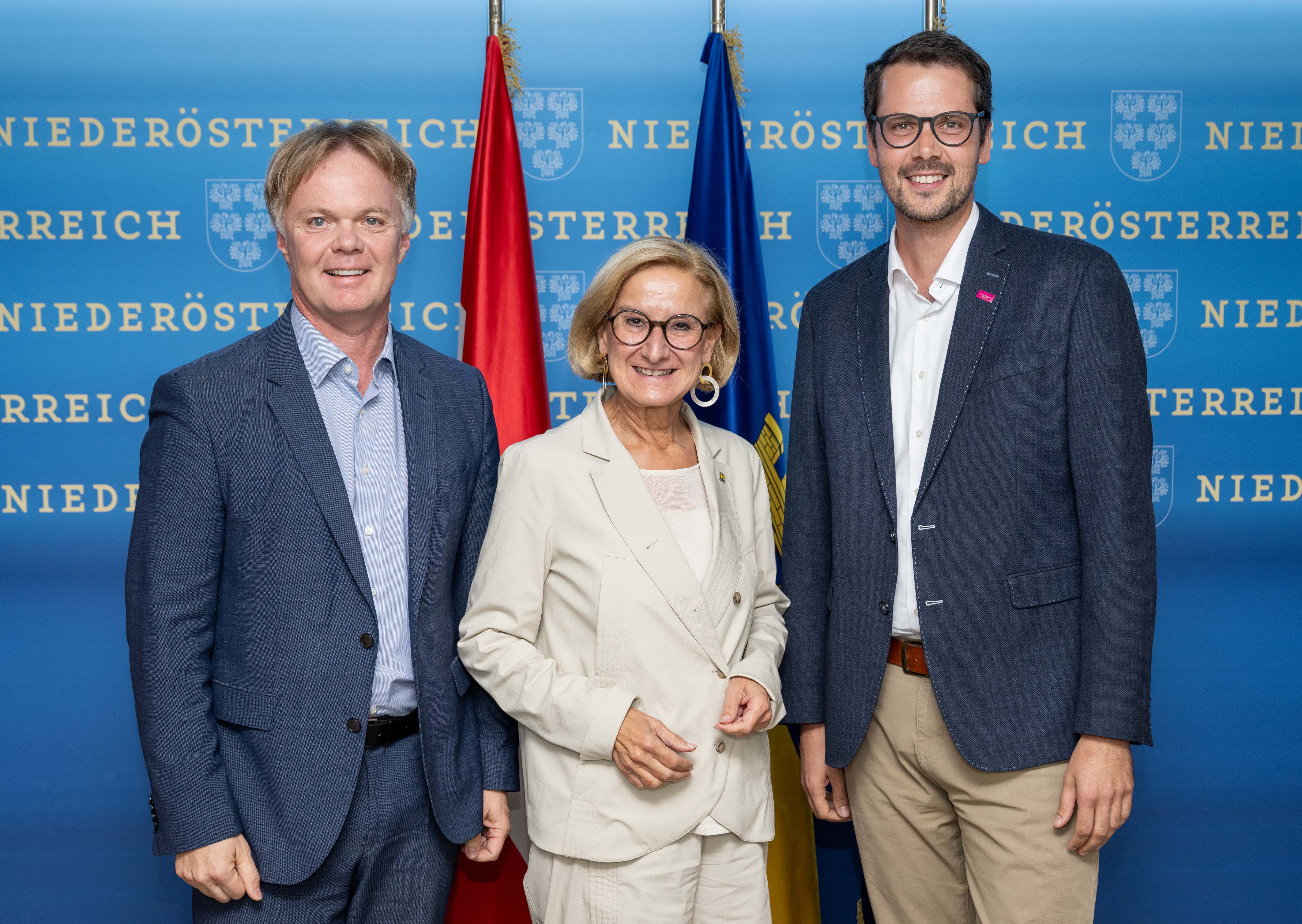 Foto: v.l.n.r.: Michael Duscher – Geschäftsführer Niederösterreich Werbung, Landeshauptfrau Johanna Mikl-Leitner, Marcus Linford – Geschäftsführer Wienerwald Tourismus GmbH