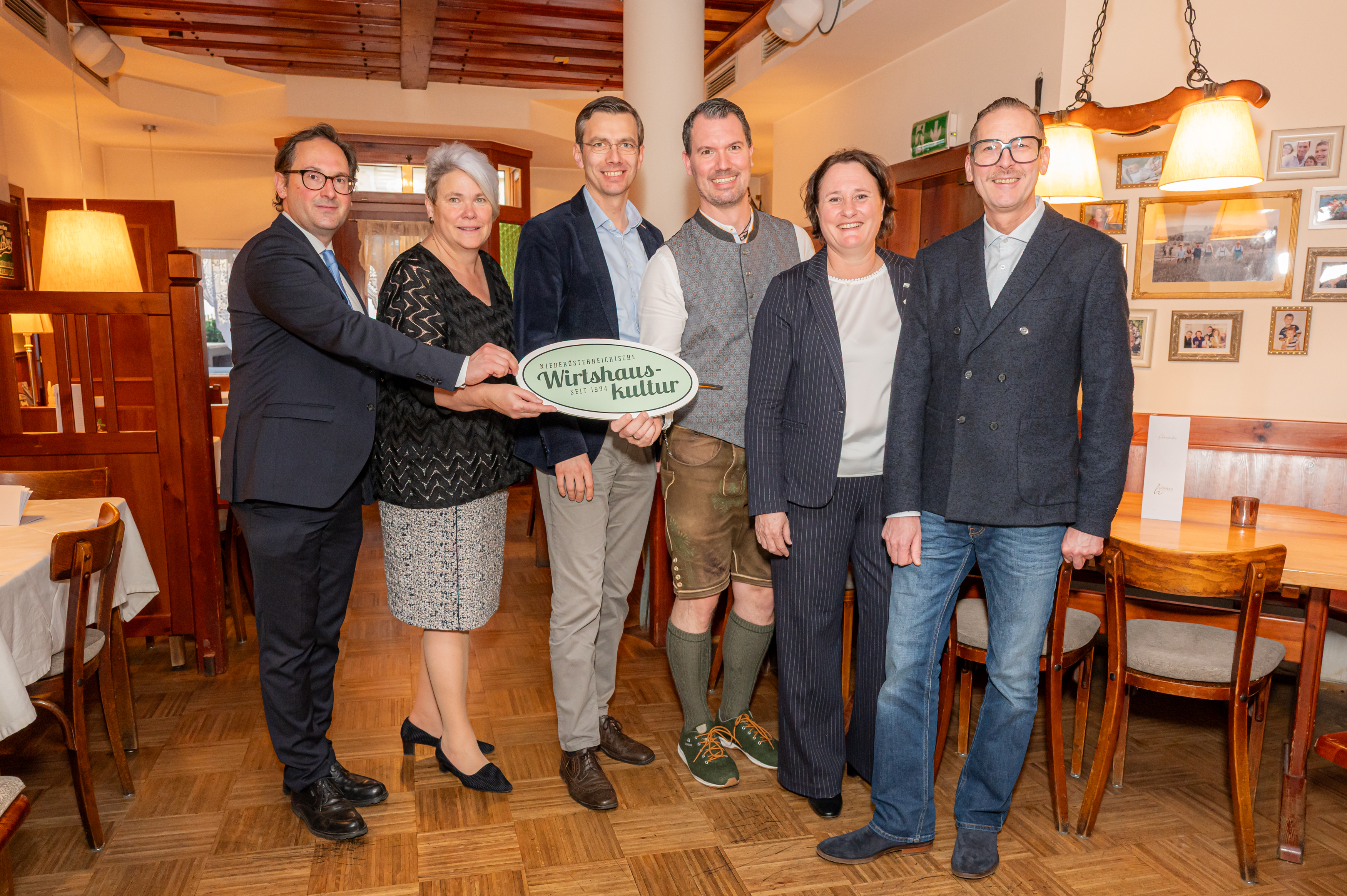 v.l.n.r.: Andreas Minnich - Nationalratsabgeordneter, Michaela Zeiler - Niederösterreich Werbung, Walter Schmalwieser - Wirtschaftskammer NÖ, Thomas Hopfeld - Dreikönigshof, Barbara Sablik-Baumgartner - Tourismusschule Retz, Harald Pollak - Niederösterreichische Wirtshauskultur