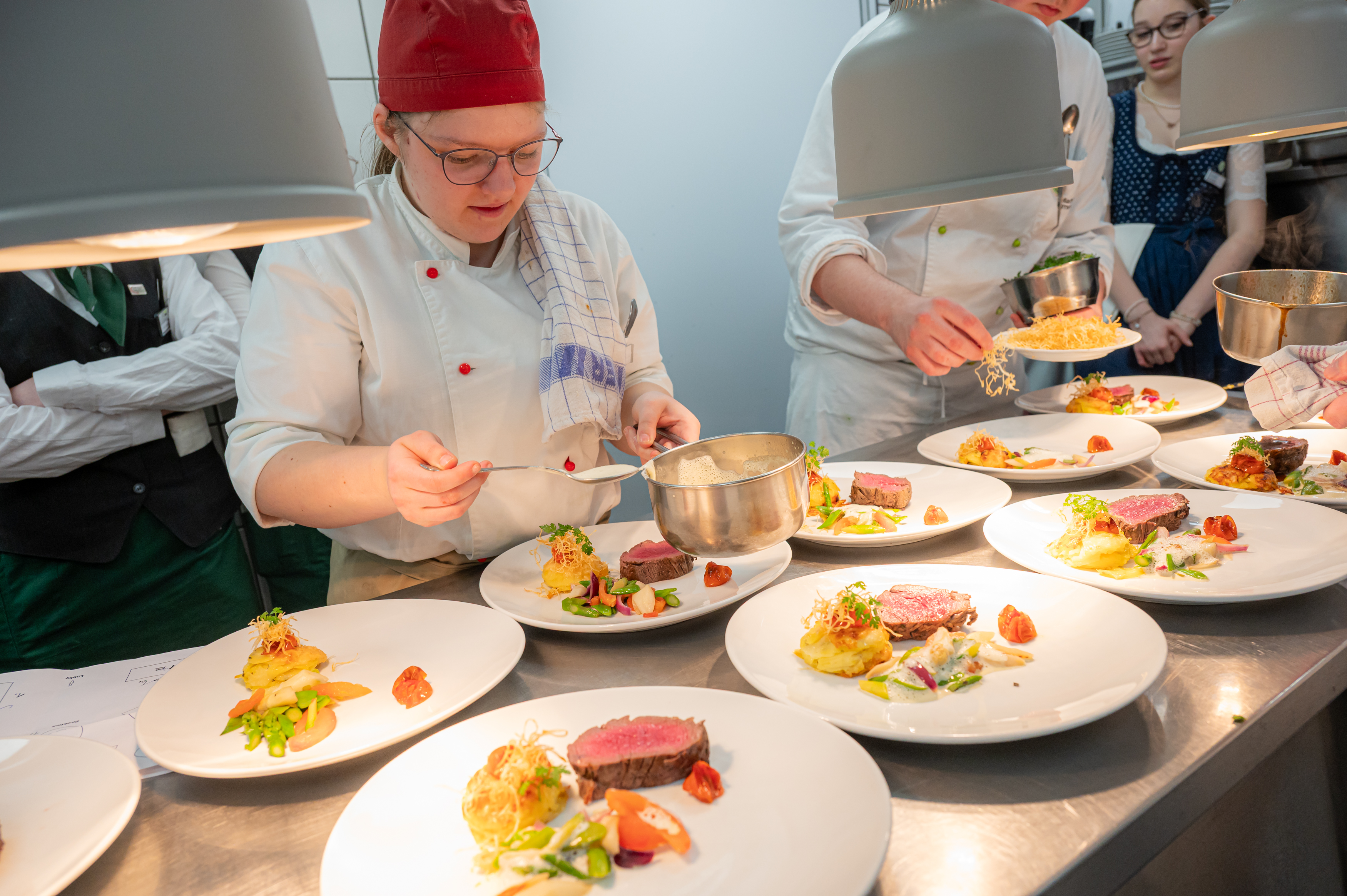 St. Pölten, 1. April 2025. Die Nachwuchsförderung ist ein Herzensanliegen des Vereins Niederösterreichische Wirtshauskultur – so auch bei der Veranstaltungsreihe „Schule macht Wirtshaus! – Wirtshaus macht Schule!“. Bei diesem Projekt ist neben dem theoretischen Wissen der Schülerinnen und Schüler auch handwerkliches Können gefragt: Von der Organisation des Abends über die Planung eines regionalen 4-Gänge-Menüs samt Weinbegleitung liegt alles in der Hand der Jugendlichen, natürlich steht ihnen die Niederösterreichische Wirtshauskultur mit Rat und Tat zur Seite. Vier Nachwuchstalente pro Tourismusschule übernehmen dann auch den kulinarischen Lead in Küche und Service und zwei weitere Schülerinnen und Schüler begleiten rund 50 Gäste durch den Abend.